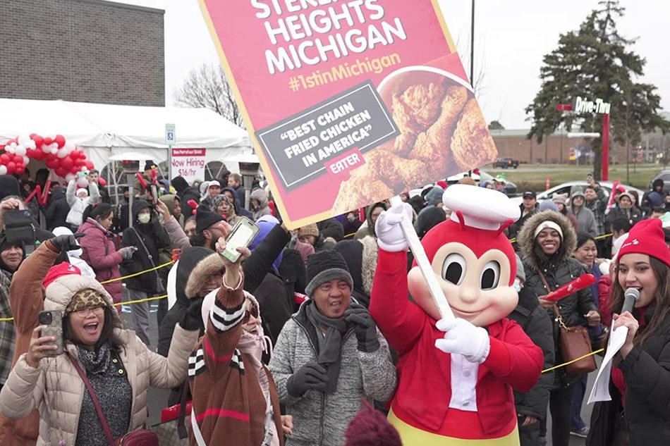 A long line of people and cars flocked to the opening of Jollibee’s first location in Michigan state. Handout